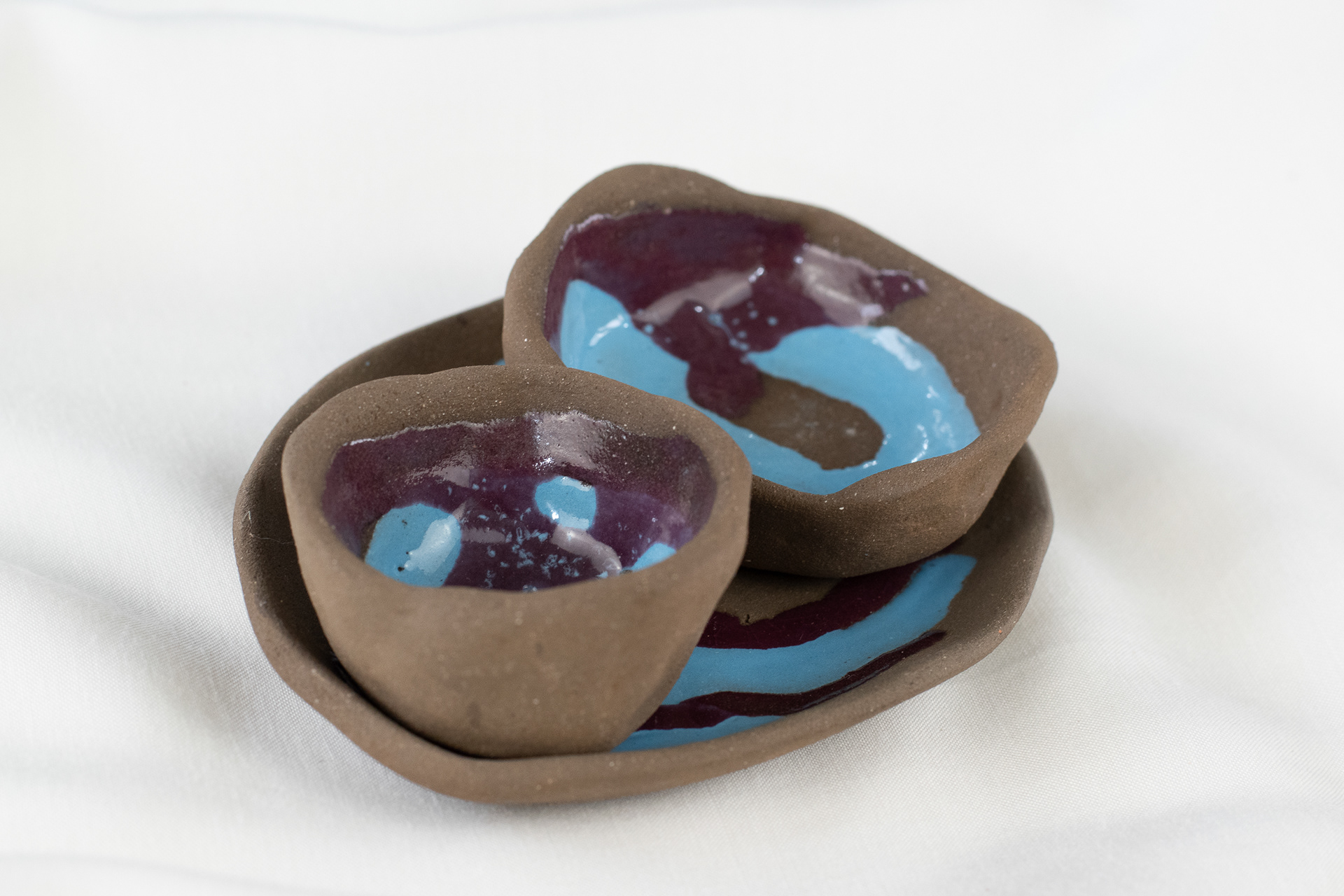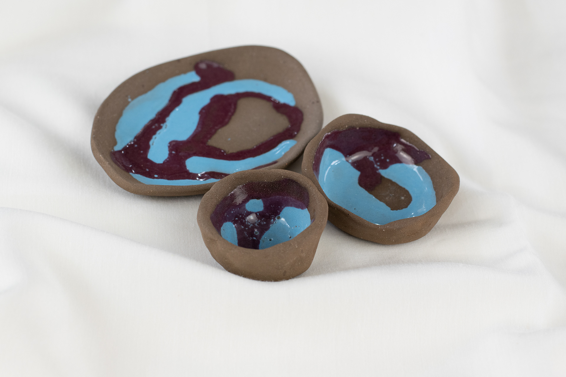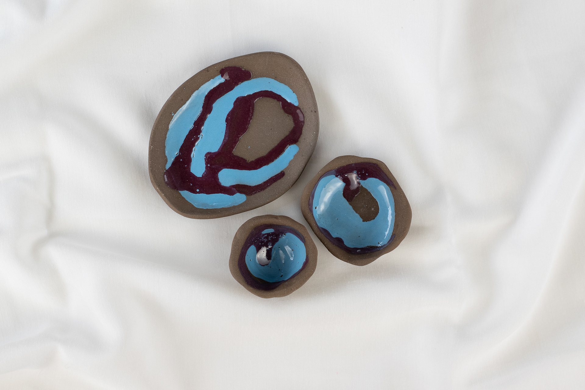 Trio em cerâmica preta esmaltada com biqueima a 1000°C