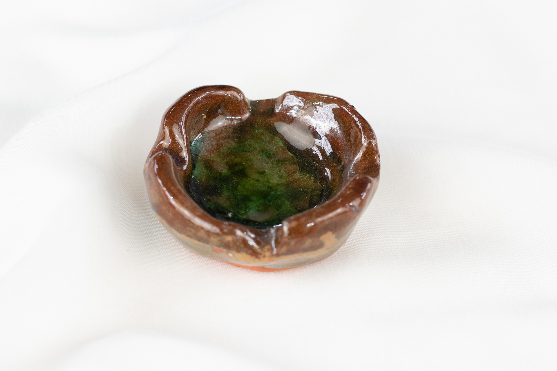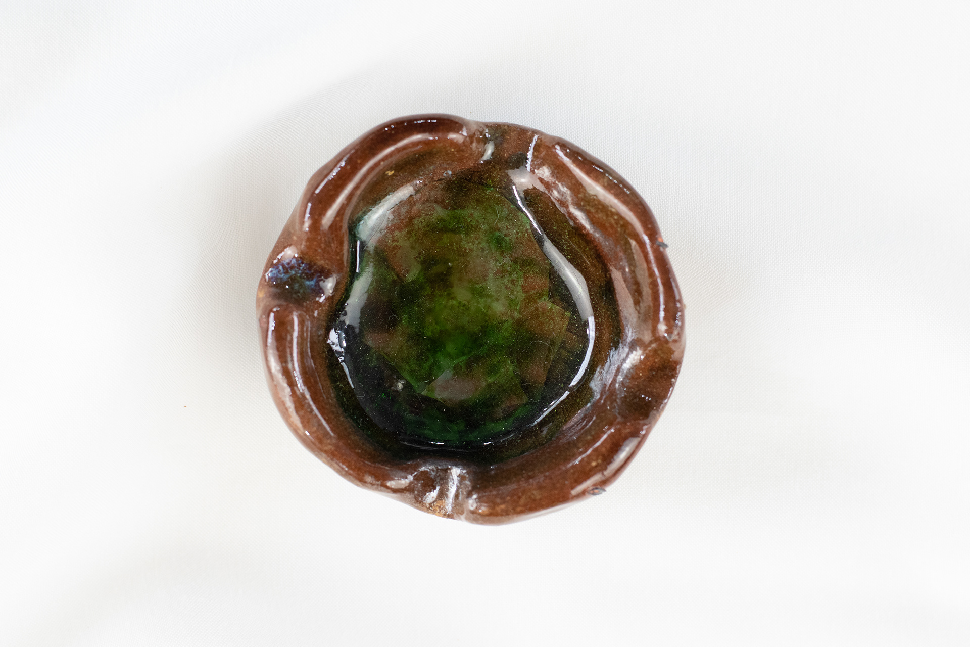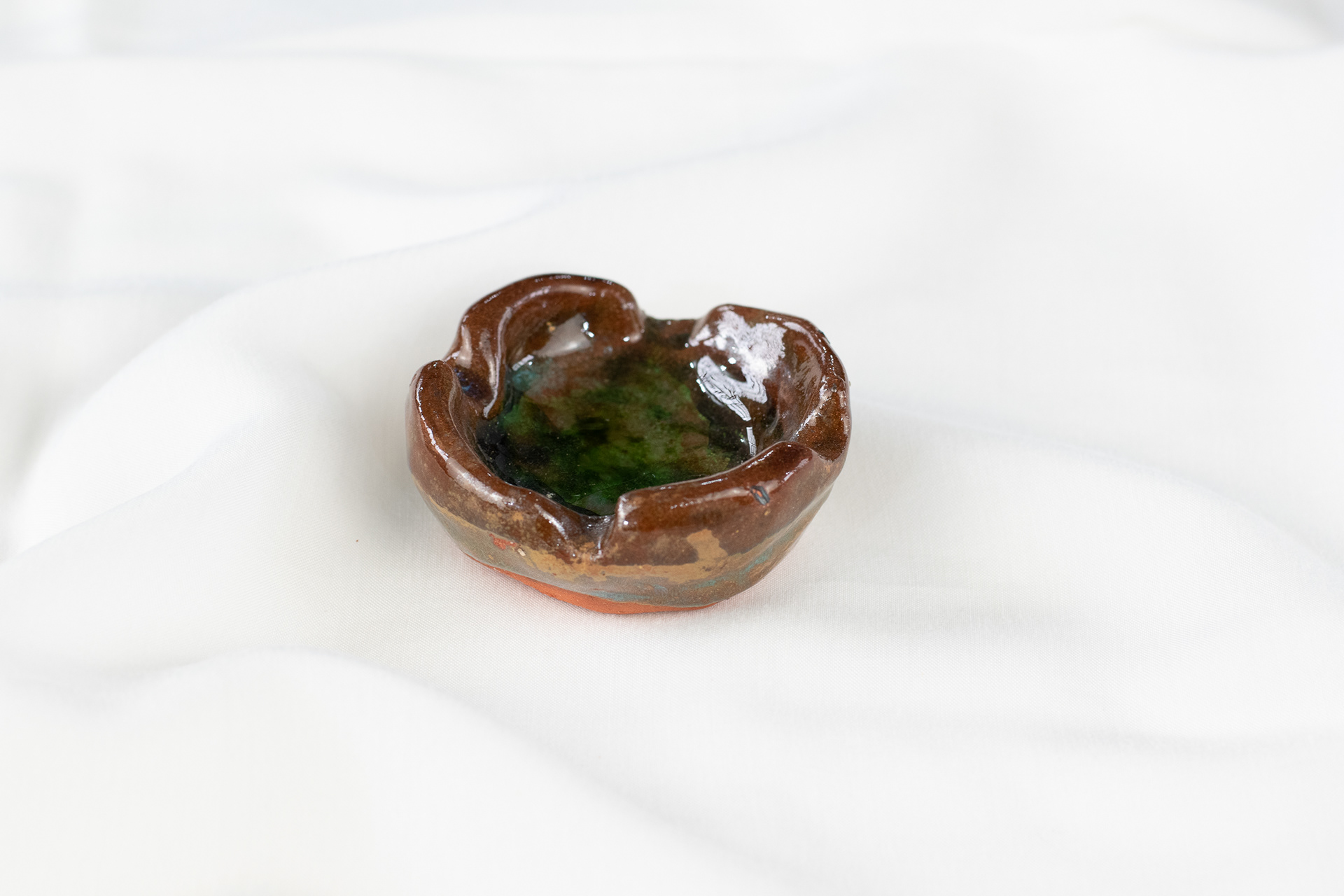 Cinzeiro em cerâmica terracota com vidro e esmalte, biqueima a 1000°C